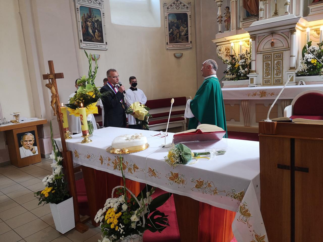 Po prvej sv. omši mu k výročiu zablahoželal poslanec OZ v Zákopčí Michal Plaček. Po druhej sv. omši slávnostne uvítal pána dekana starosta obce Zákopčie Ján Slaninák, ktorej sa zúčastnilo mnoho detí a veriacich podľa starých tradícii v ľudových krojoch.