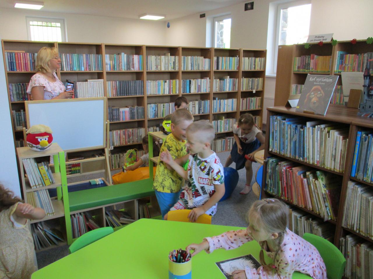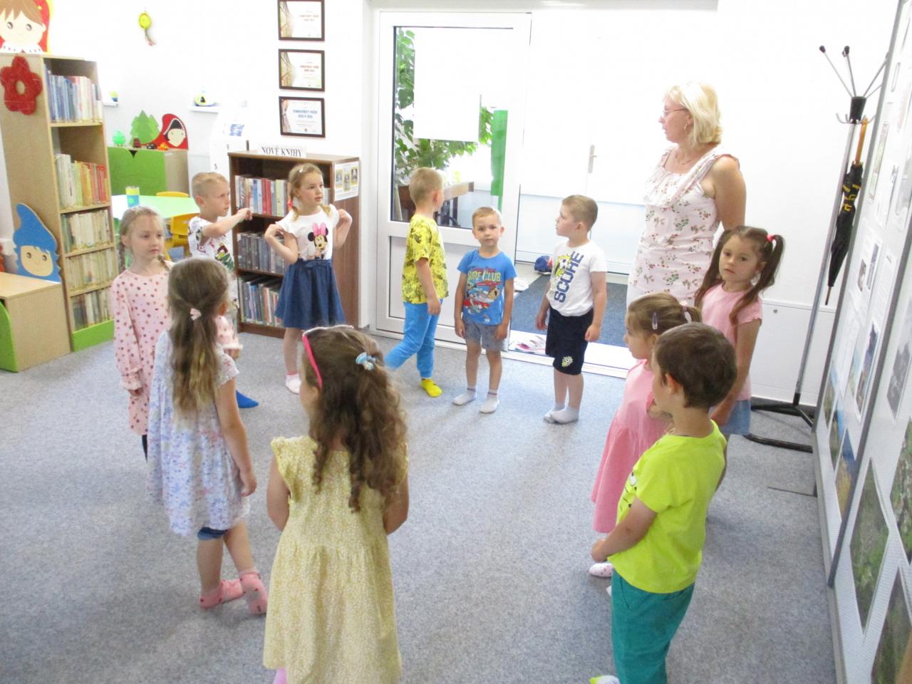 V knižnici si spolu zaspievali, porozprávali sa o knižnici, zahrali sa v detskom kútiku a na záver im pani knihovníčka prečítala rozprávku a s deťmi rozoberali príbeh, o ktorom im čítala.