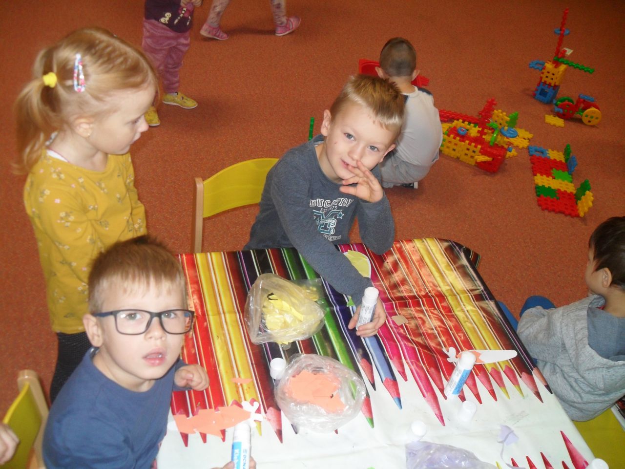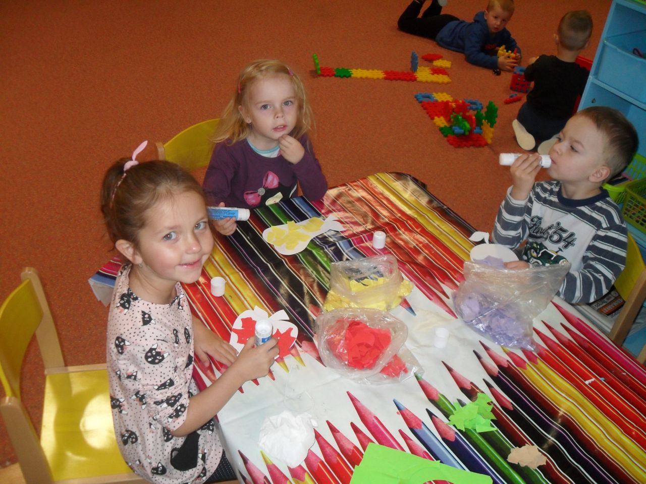 Deti sa nenásilnou hravou formou a zážitkovým učením oboznamovali so zmenami v prírode počas jesene. Vo výchovno- vzdelávacej činnosti sme často využívali nazbieraný prírodný materiál, prostredníctvom ktorého si deti rozvíjali tvorivosť, fantáziu a vzájomnú spoluprácu.