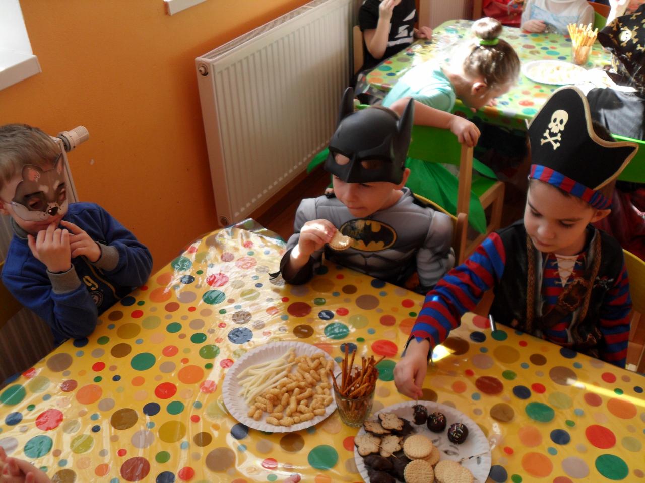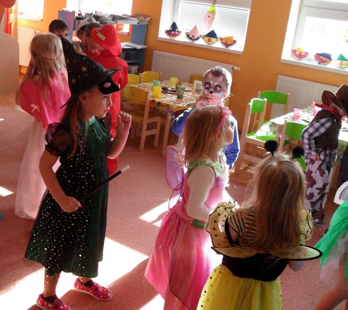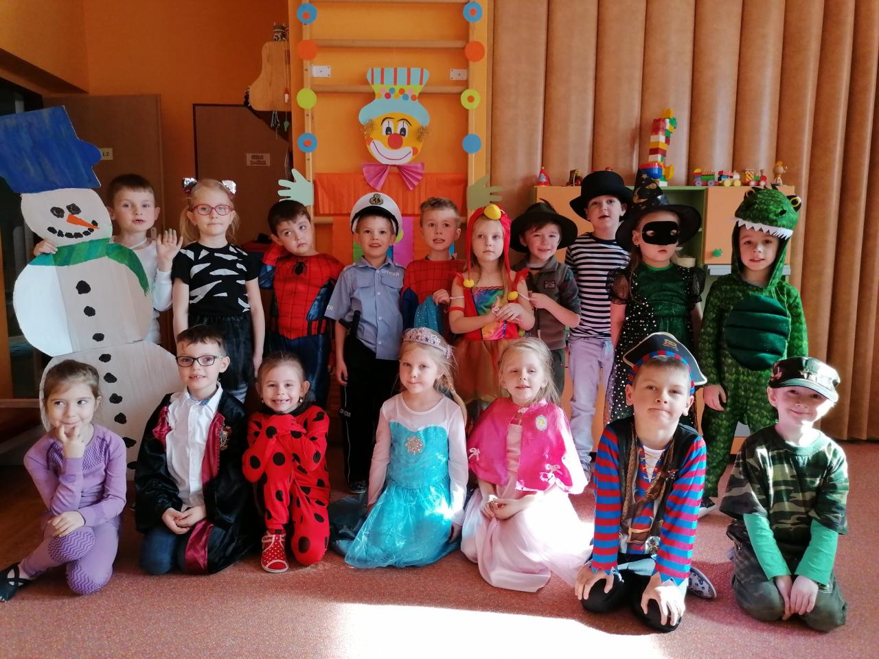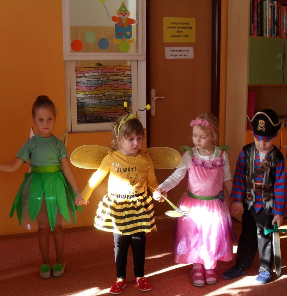 V stredu 19.02.2020 sme piesňou „Maškarný ples“ a básňou „Na karnevale“ otvorili náš tohtoročný fašiangový karneval. Celá trieda sa premenila na pestrofarebnú miestnosť, ktorá bola plná rozprávkových postavičiek. Deti sa predviedli v prekrásnych maskách od princezien, zvieratiek, rytierov, až po kov