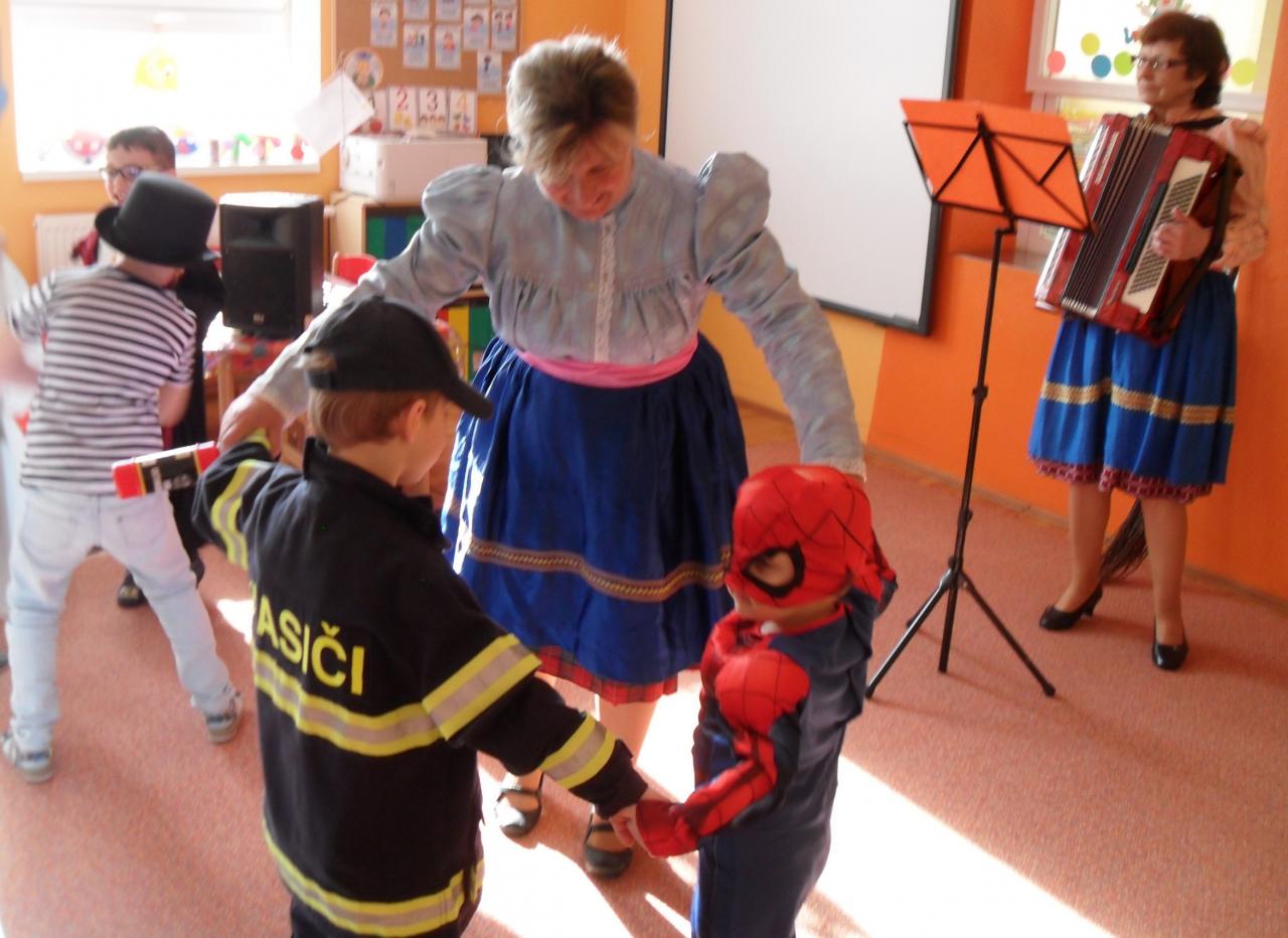 Detský karneval prebehol vo veselej nálade, o ktorú sa postarali pani učiteľky, ale aj Hudobné centrum z Bratislavy, s hudobno – výchovným projektom „Fašiangy“. Deti sa oboznámili so zvyklosťami, ktoré sa v mnohých regiónoch dodržujú dodnes ( kroje, práca, zábava, spolužitie v rodine, trávenie voľného času, pečenie šišiek, pampúšikov, fánok, závinov, usporadúvanie sprievodov a maškár symbolizujúcich silu a plodnosť). Nechýbalo interaktívne zapojenie detí do hier a tancov /tanec s medveďom, metlový tanec,.../. Nezabudli sme ani na občerstvenie pre deti, o ktoré sa postarali rodičia. Celé dopoludnie sa konalo v radostnej atmosfére. Deti boli spokojné, veselo sa zabávali, tancovali a mali radosť z masiek, ktoré im priniesli rodičia. Na záver boli všetky masky odmenené rovnakou cenou.Bol to kúzelný deň plný radosti, spokojnosti a dobrej nálady.
