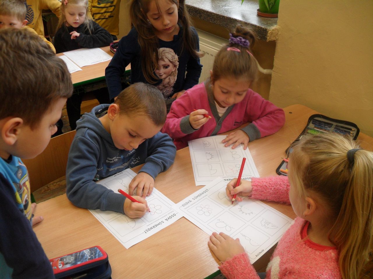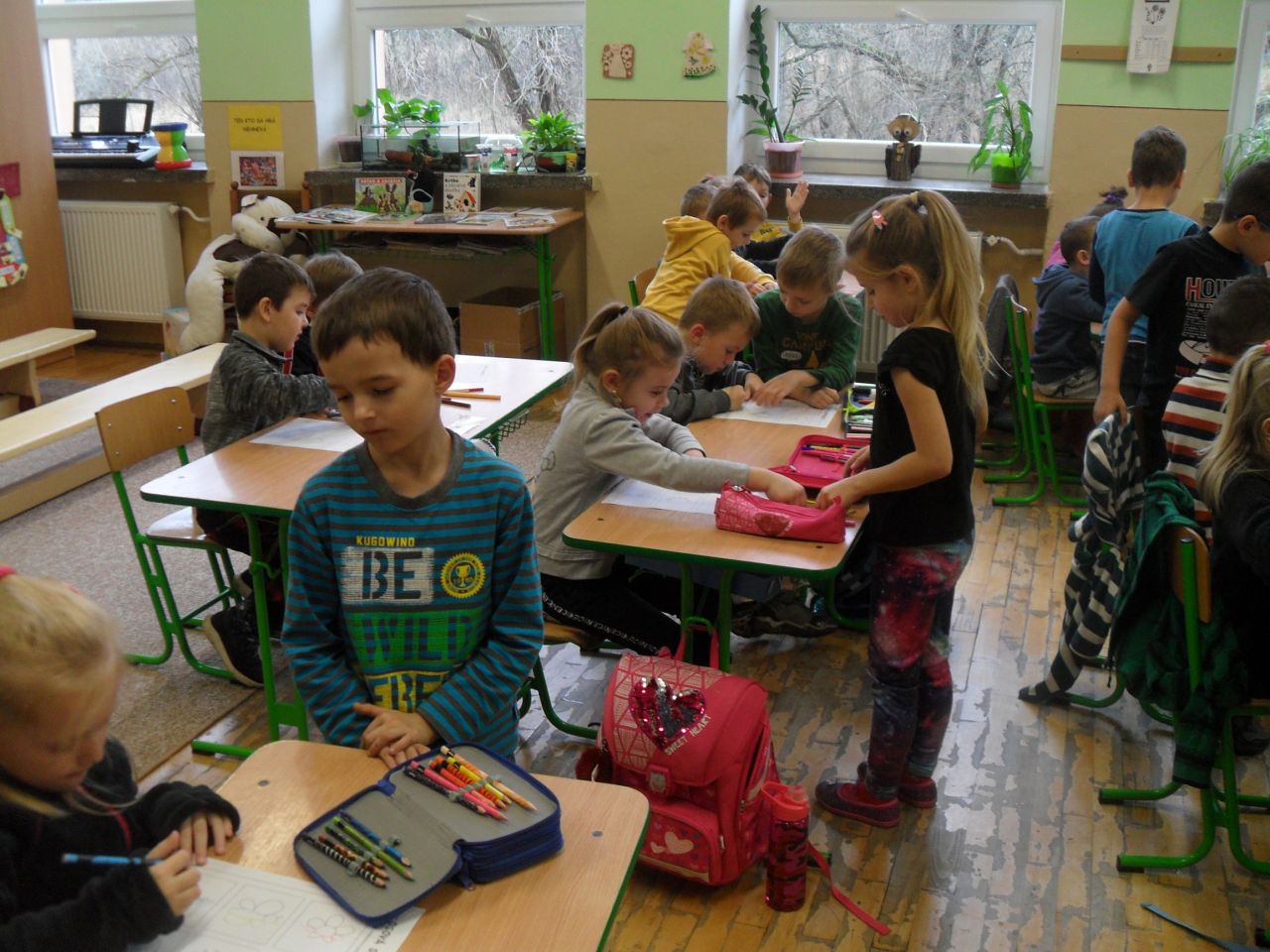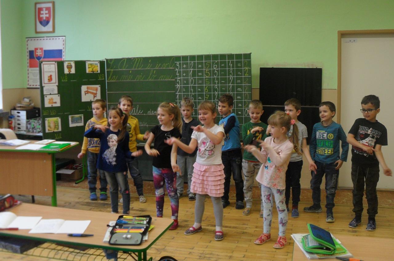Čítali z tabule aj zo šlabikára, písali na tabuľu aj do zošitov a počítali príklady. Do úloh sa zapájali aj naše deti. Vedeli pomenovať čísla, určovať počet, vytlieskať slová, určovať prvú slabiku v slove aj spolupracovať s kamarátmi. Veľkým zážitkom pre deti bolo, že si mohli vyskúšať ako sa sedí v naozajstnej školskej lavici a počíta na veľkom počítadle. Na záver si deti vzájomne zaspievali a sľúbili si, že sa opäť stretnú, no tentoraz už v materskej škole.