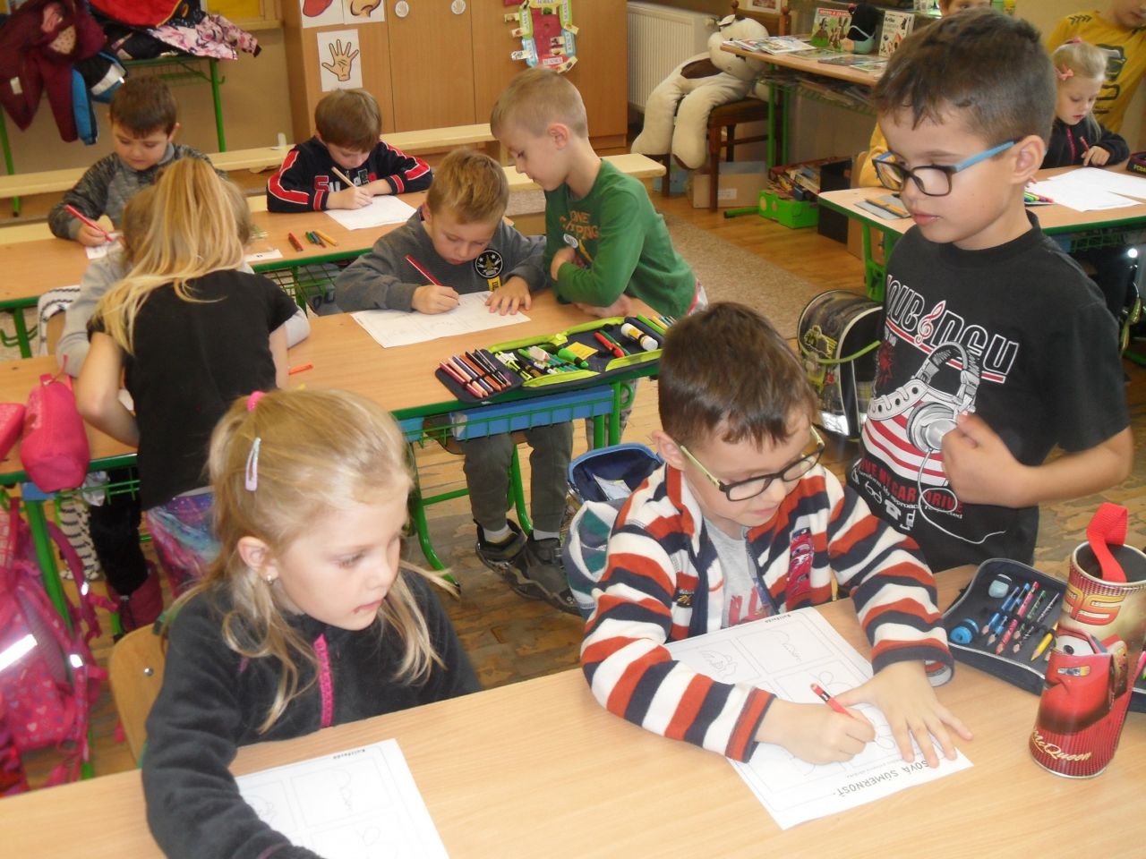Dňa 13.11.2019 naši predškoláci navštívili prvákov v ZŠ, kde ich srdečne privítala pani učiteľka Mgr. Emília Chomová. Prváci predviedli, čo všetko sa už naučili.