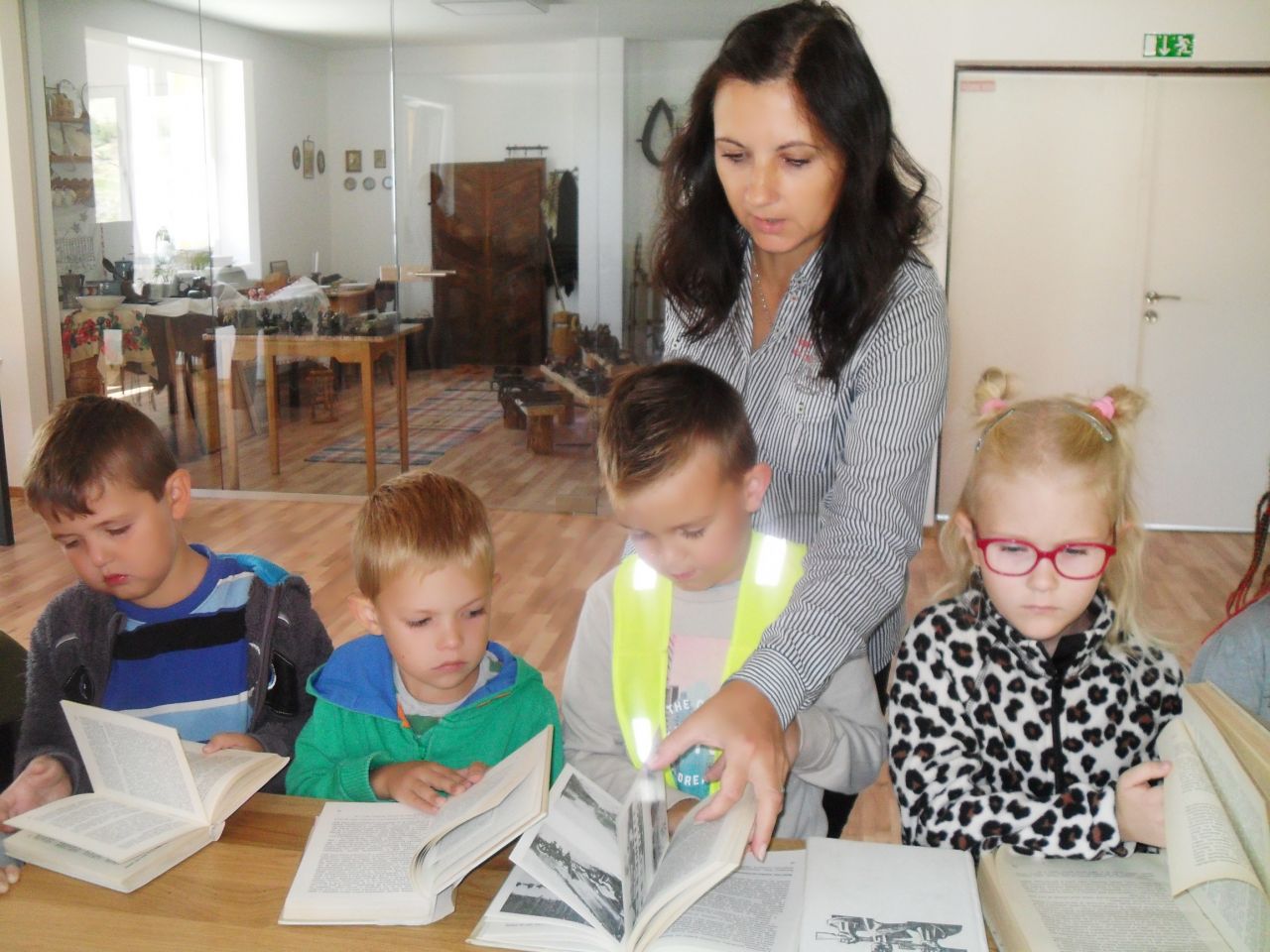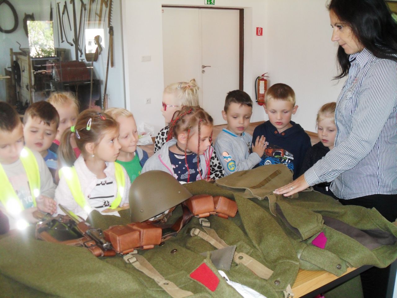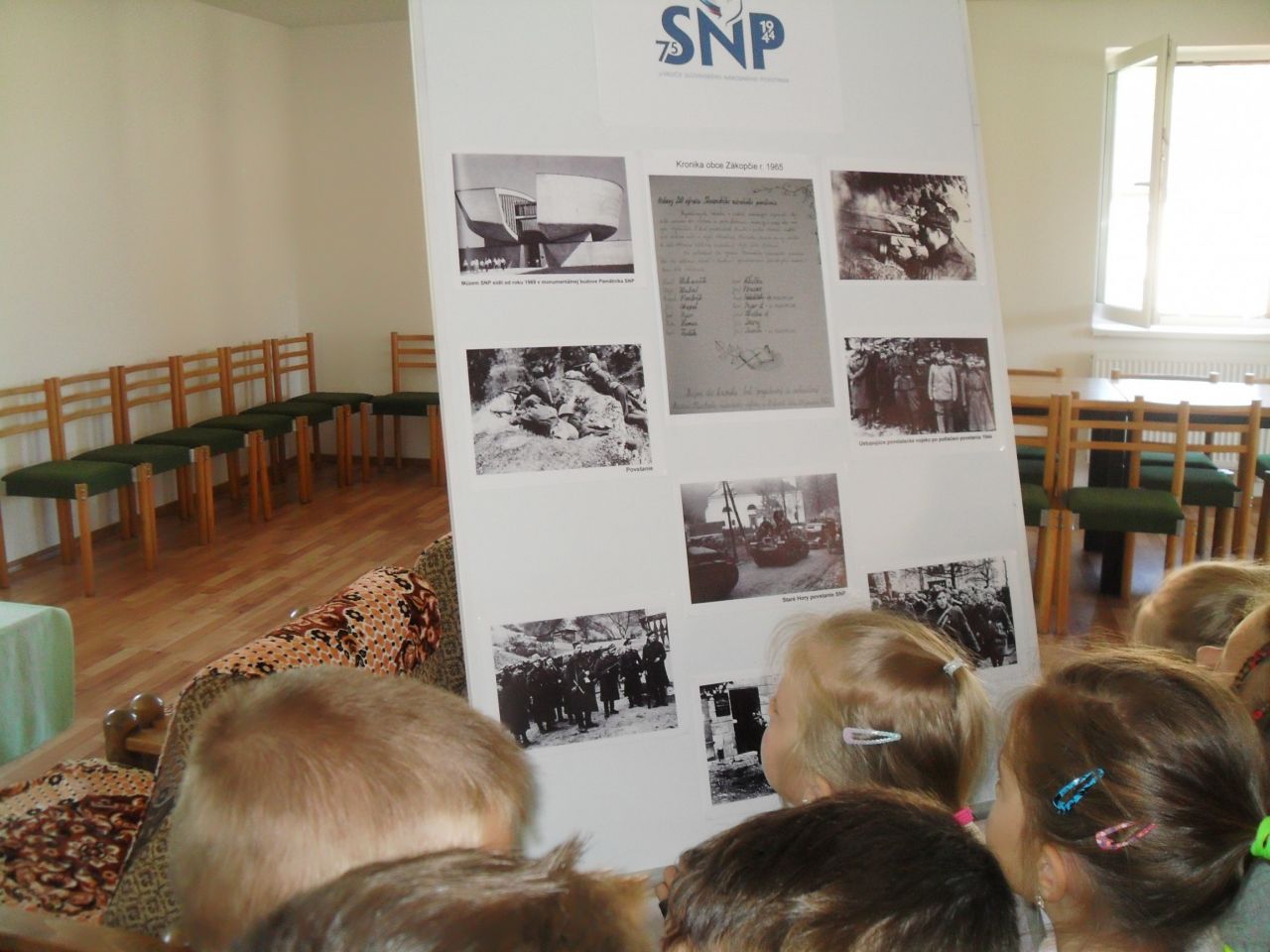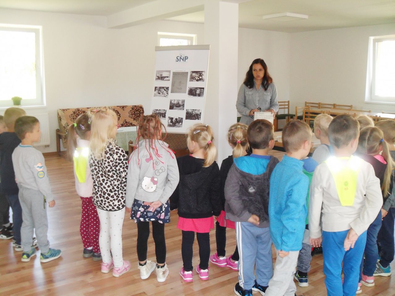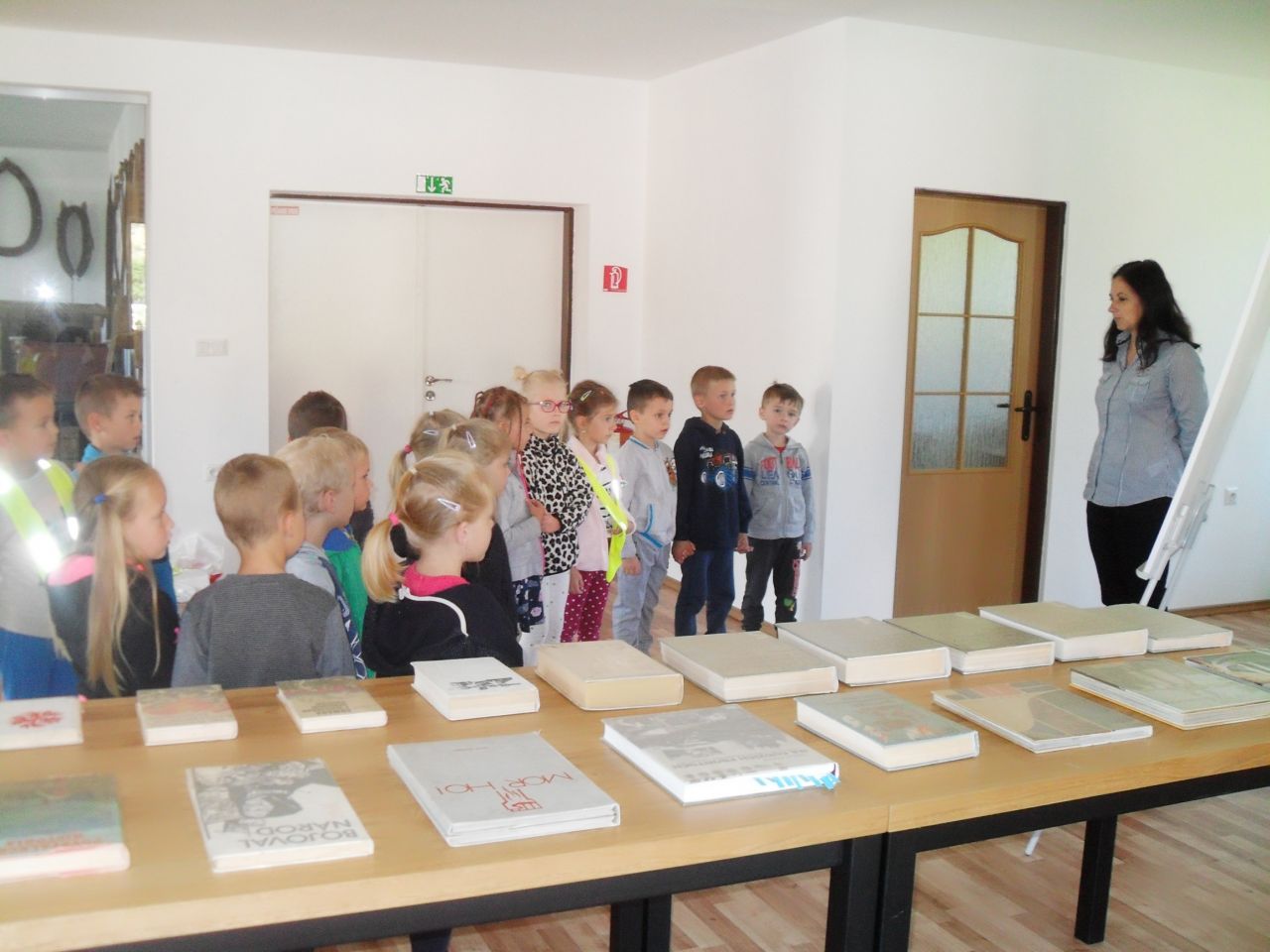Vo štvrtok 05.09.2019 naši predškoláci po prvýkrát v tomto školskom roku navštívili Obecnú knižnicu. Pozreli si tu výstavu vojenských uniforiem, modelov tankov a vojakov, pri príležitosti 75. výročia SNP. Výstavou ich sprevádzala teta knihovníčka zaujímavým a pútavým rozprávaním. Materiál na výstavu poskytol p. Ohrádka.