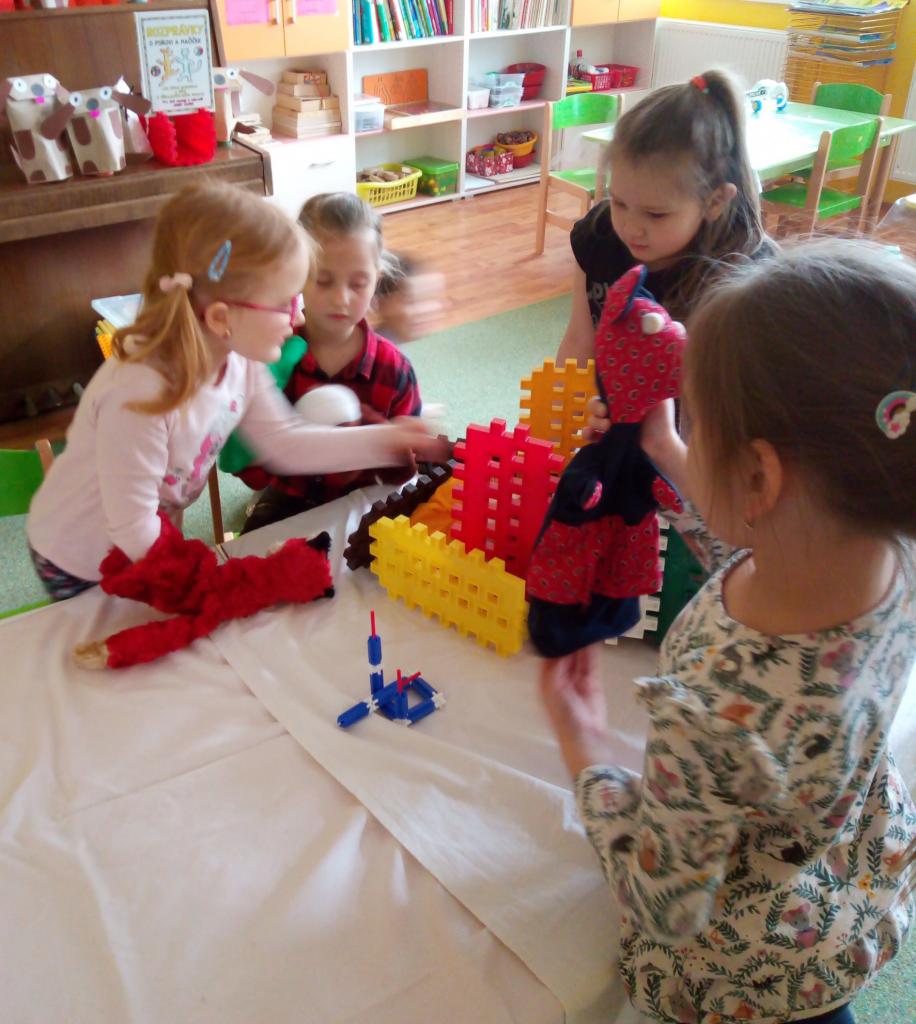 V triede č.3 lienky si deti pozreli obľúbenú rozprávku „O Červenej čiapočke“ a vyrobili si maňušky žabky a prasiatka.