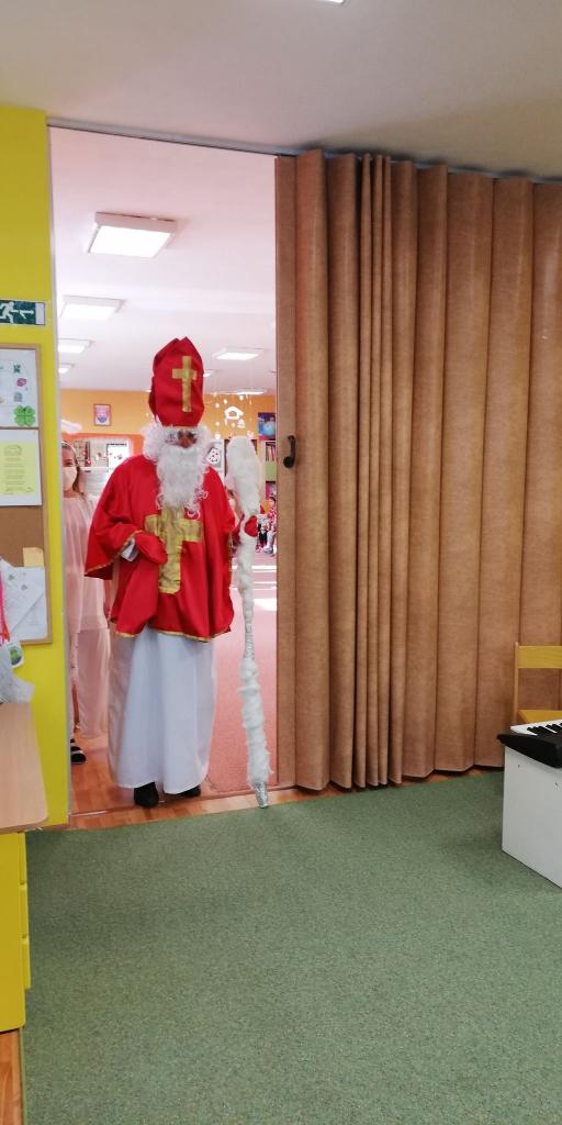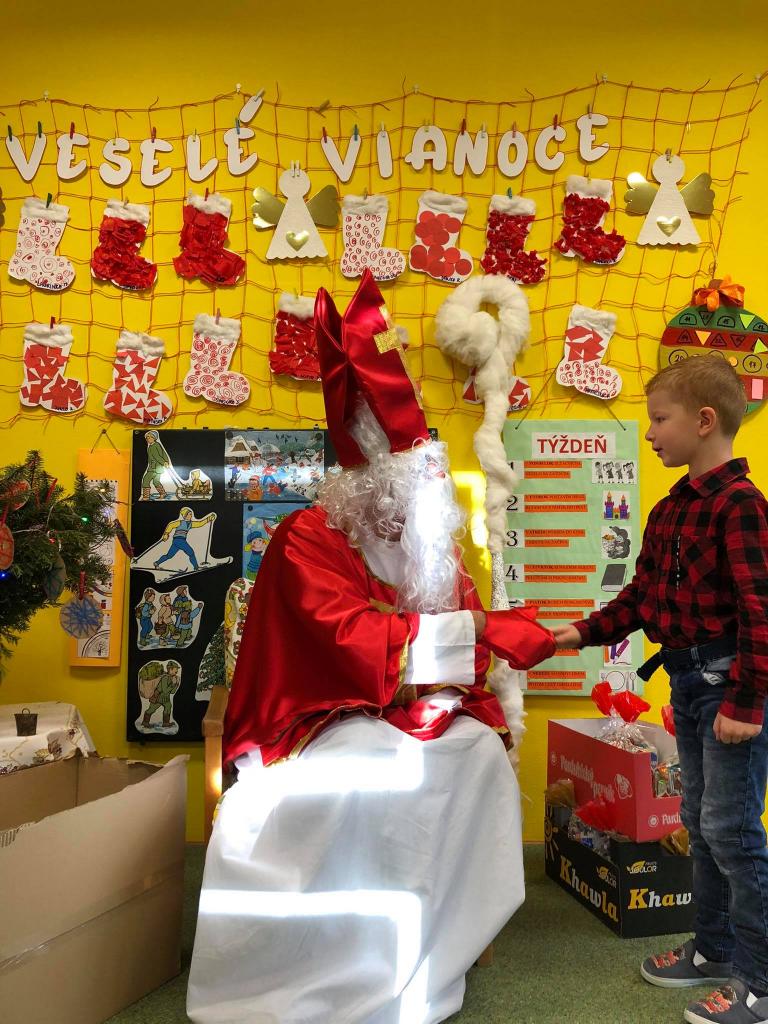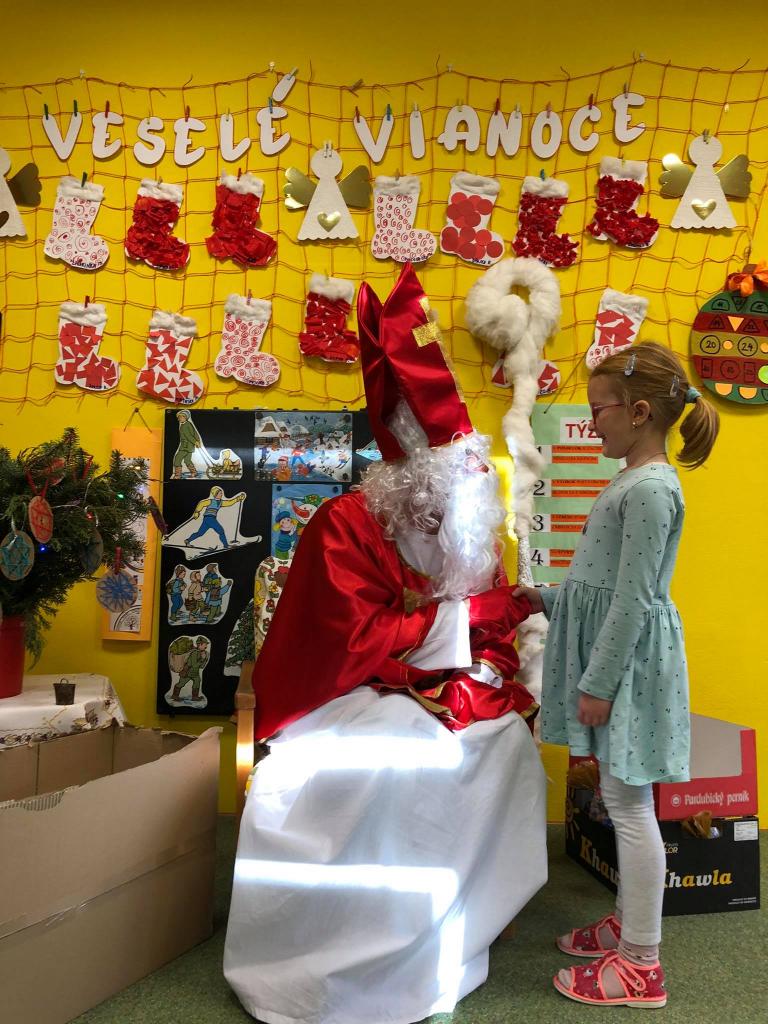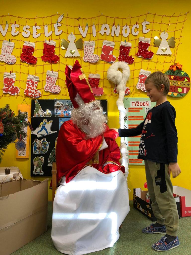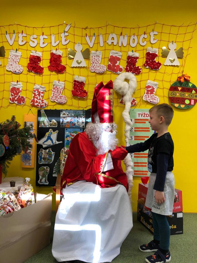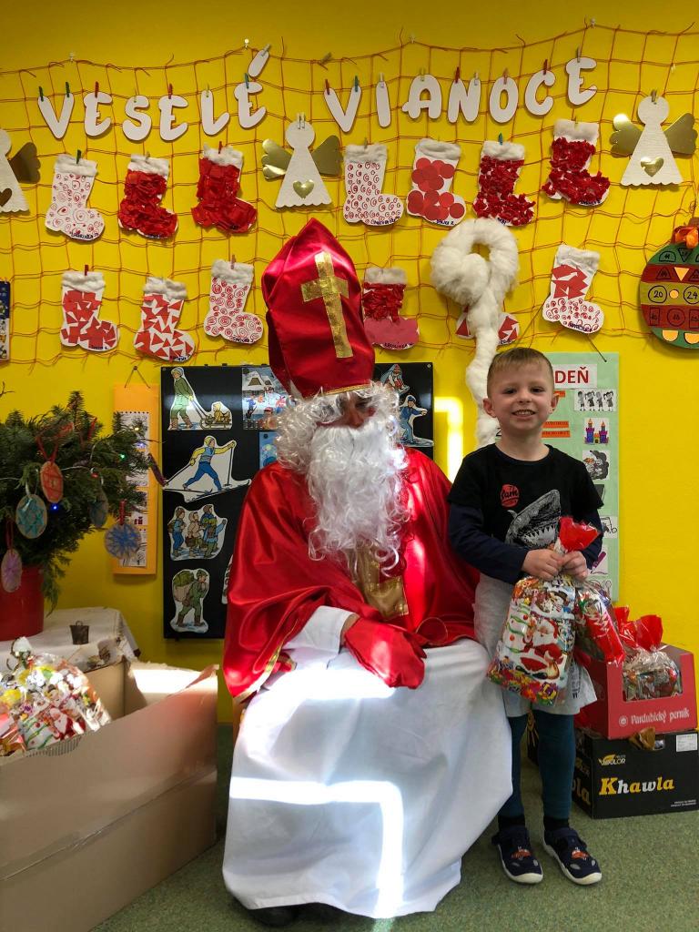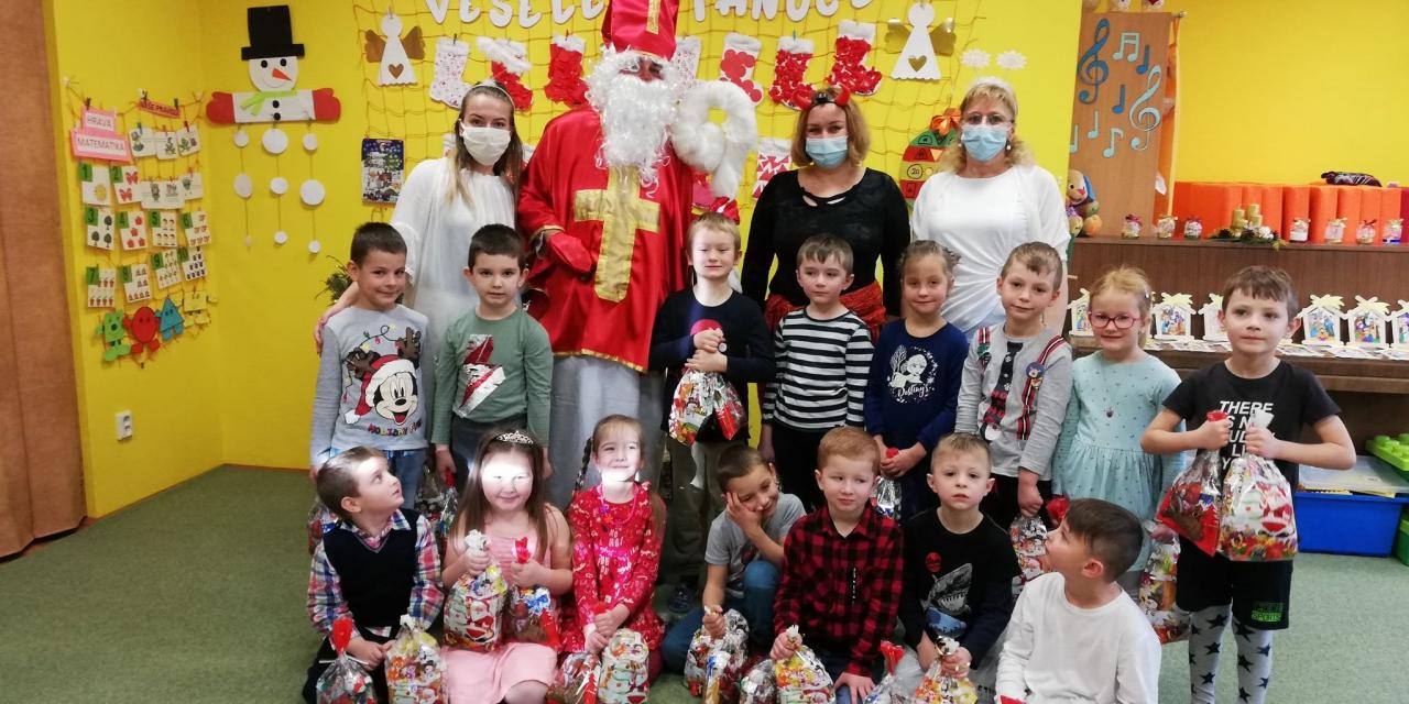 Dňa 9. decembra 2020 za zvuku zvončeka vstúpil do škôlky aj so svojím pomocníkom anjelikom. Mikuláš postupne navštívil všetky triedy, v ktorých mu deti zaspievali, zarecitovali a s radosťou každé dieťa prijalo dva balíčky plné dobrôt /jeden od pána starostu a druhý zabezpečil výbor ZRŠ/. Veľké poďakovanie patrí pánovi starostovi Jánovi Slaninákovi za to, že prišiel potešiť detské srdiečka v maske Mikuláša.