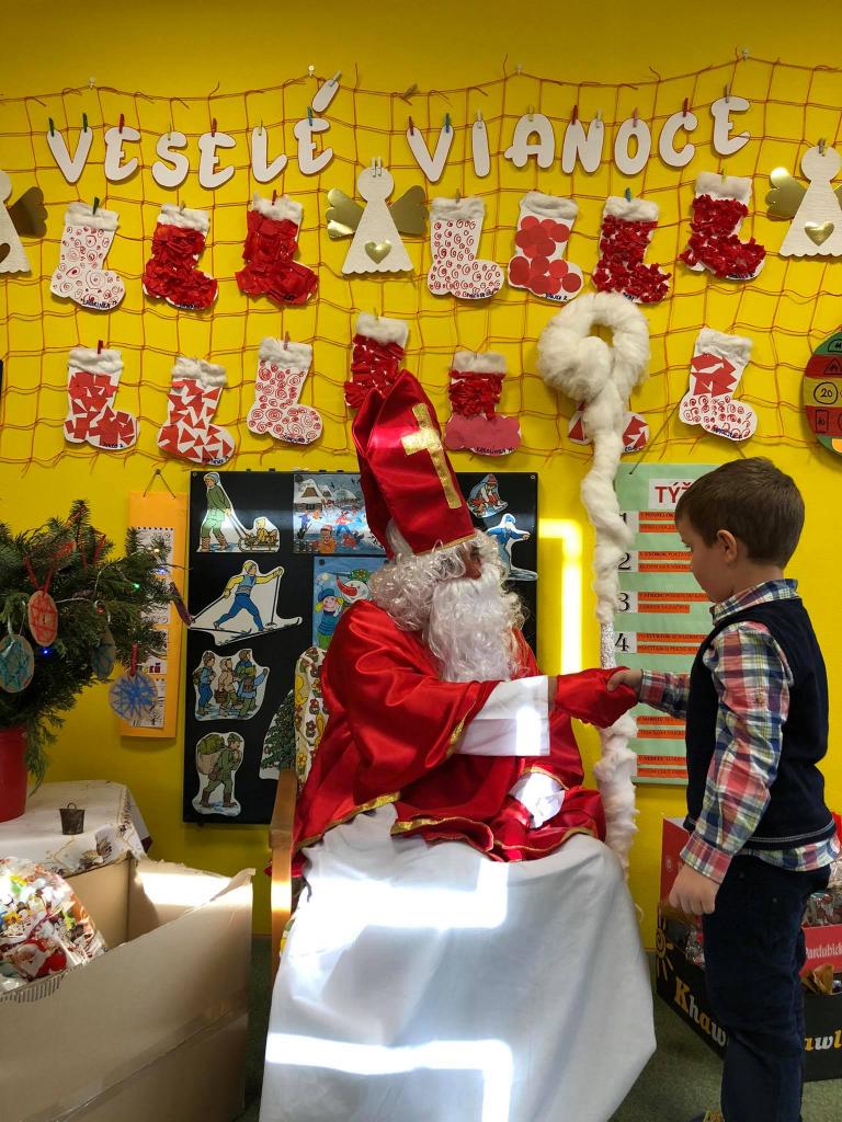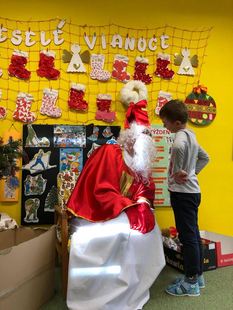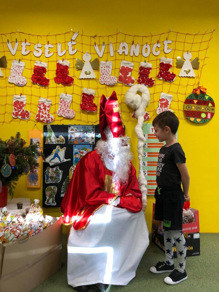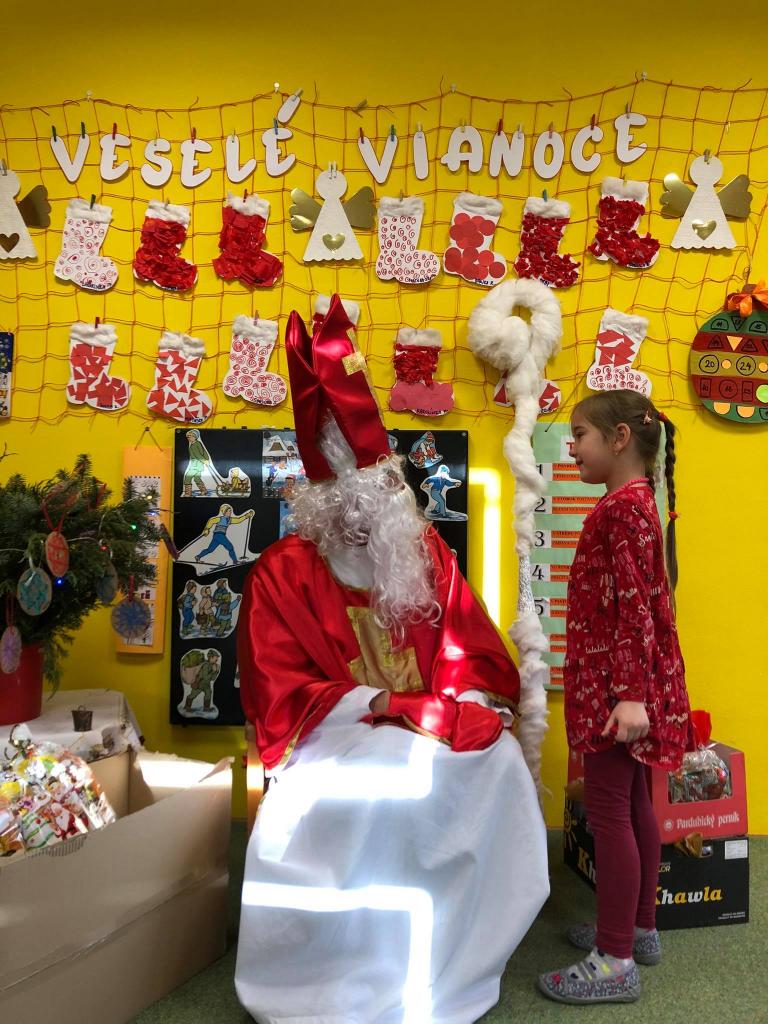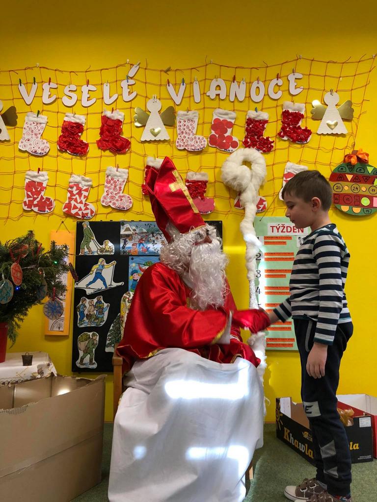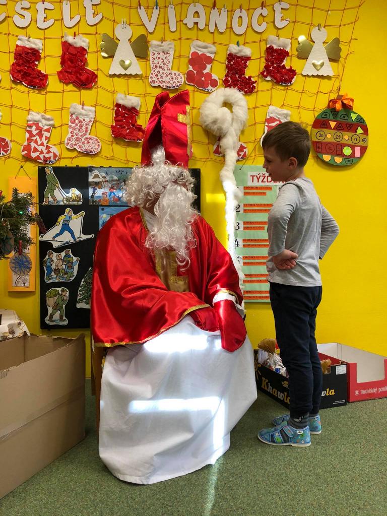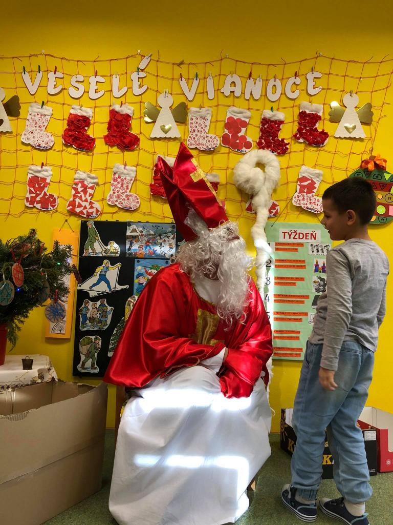 Dňa 9. decembra 2020 za zvuku zvončeka vstúpil do škôlky aj so svojím pomocníkom anjelikom. Mikuláš postupne navštívil všetky triedy, v ktorých mu deti zaspievali, zarecitovali a s radosťou každé dieťa prijalo dva balíčky plné dobrôt /jeden od pána starostu a druhý zabezpečil výbor ZRŠ/. Veľké poďakovanie patrí pánovi starostovi Jánovi Slaninákovi za to, že prišiel potešiť detské srdiečka v maske Mikuláša.