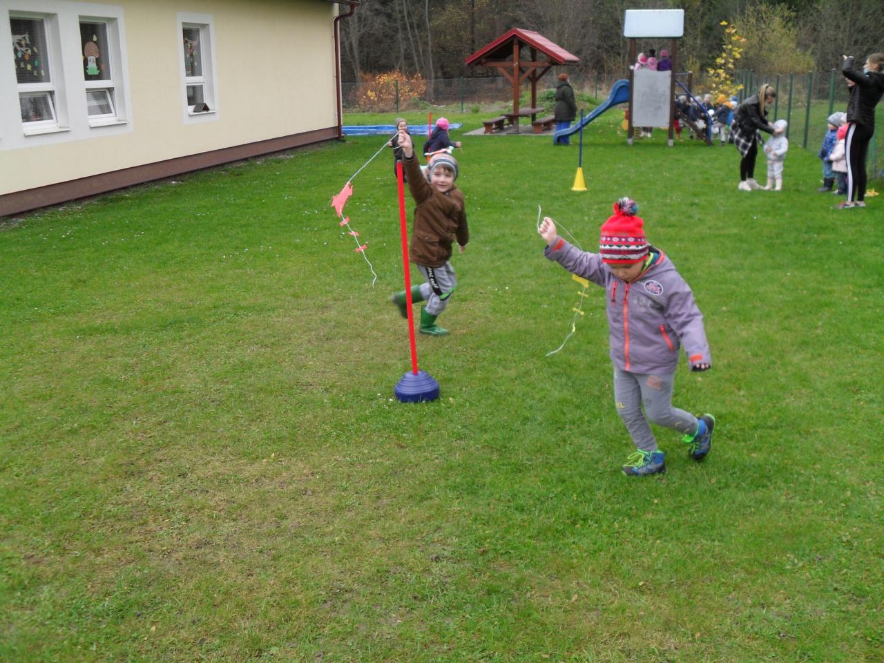 Keďže k jeseni neodmysliteľne patria šarkany, deti sa veľmi tešili, že si ich mohli v materskej škole vytvoriť. A to sa im aj podarilo, a tak sme dňa 5.11.2020 v školskej záhrade zrealizovali šarkaniádu. Deťom sa behanie s motúzom v ruke veľmi páčilo a do škôlky sa vracali s dobrými pocitmi.