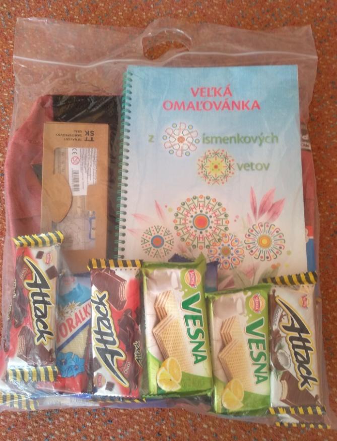 Z našej materskej školy sme zaslali 40 vymaľovaných súťažných pohľadníc- maľovaniek. Na 100 vyžrebovaných detí sa usmialo šťastie a boli z pomedzi všetkých súťažiacich vyžrebovaní. Tešíme sa, že medzi vyžrebovanými deťmi je aj naša Miška Novánska, ktorá získala balík s prekvapením.
