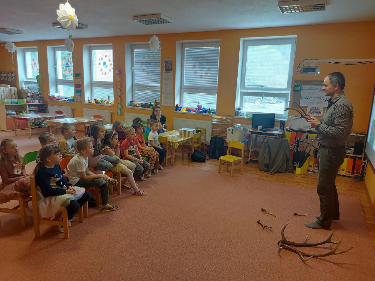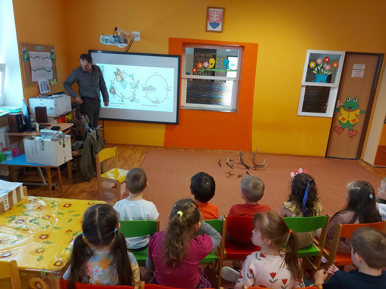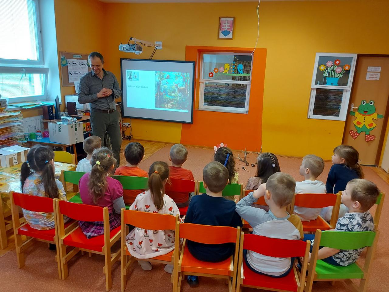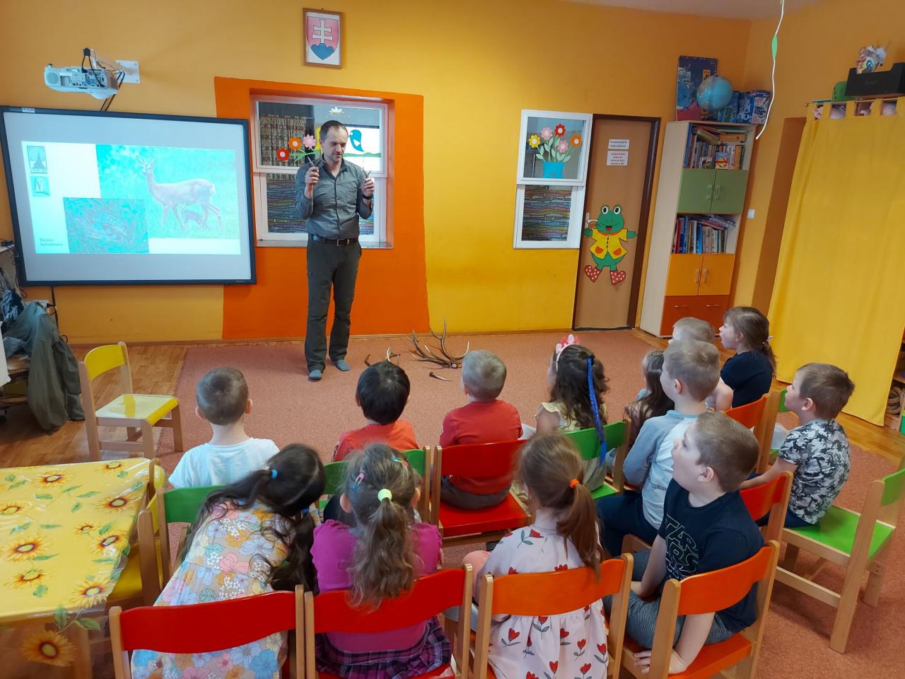 Deti vo všetkých triedach si aktivitami pripomenuli, ako sa o Zem treba starať, a čomu by sa pri svojom správaní mali vyhnúť. Pani učiteľky deťom názorne predviedli príklady separovania, či na obrázkoch priblížili, čo do prírody nepatrí. Na spoločnej vychádzke sme zbierali odpadky z čoho mali deti veľkú radosť a aktívne sa zapájali. Pri tejto príležitosti navštívil deti v triede žabiek dňa 26.4.2023 pán horár Milan Laš, ktorý deťom porozprával zaujímavosti z prírody, a mal pripravené aj rôzne praktické aktivity.