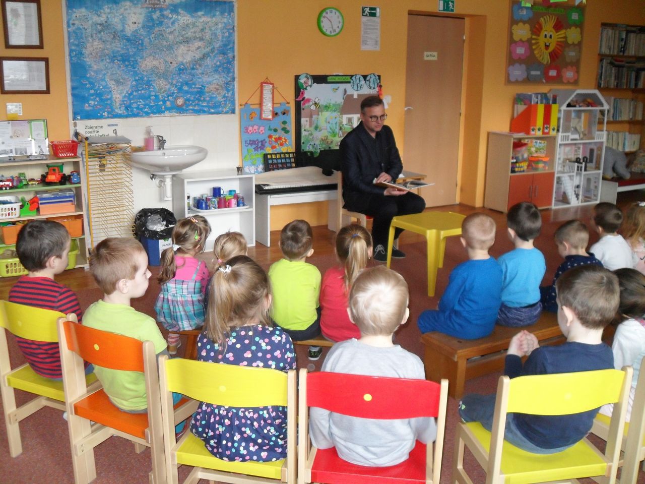 Deti pozorne počúvali a za pútavé príbehy o zvieratkách sa mu odmenili potleskom.