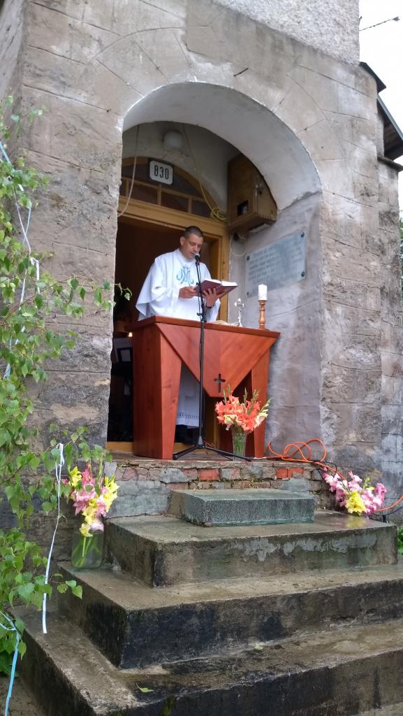 Kvôli nepriaznivému počasiu sa neuskutočnila púť od kostola a program začal svätou omšou v kaplnke u Holešov, počas ktorej vystúpil náš spevácky zbor sv. Jána Krstiteľa a FS Svrčinka zo Svrčinovca.