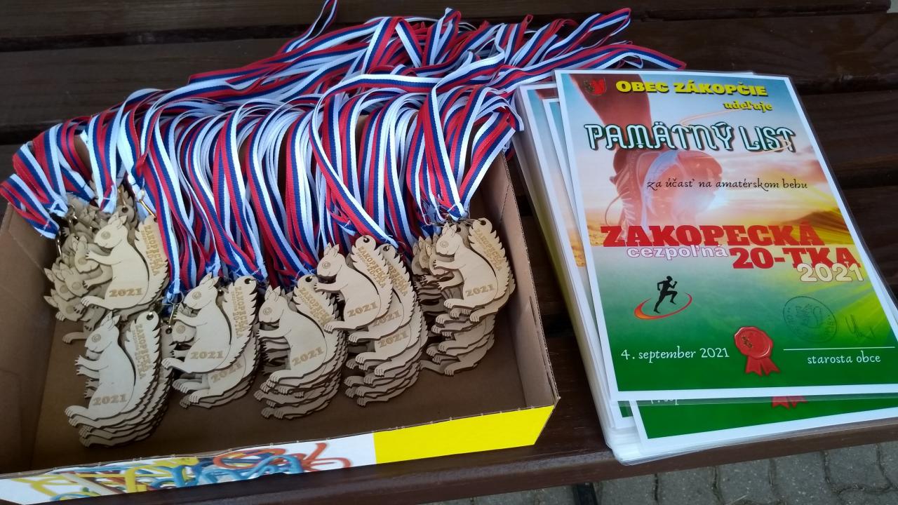 Každý účastník registrovaný online dostal na pamiatku tričko, všetci pretekári po dobehnutí do cieľa medailu a osobne od starostu obce Zákopčie Jána Slanináka a zástupcu starostu Mgr. Františka Lineta pamätný list. Najlepší bežci boli odmenení aj peknými vecnými cenami.