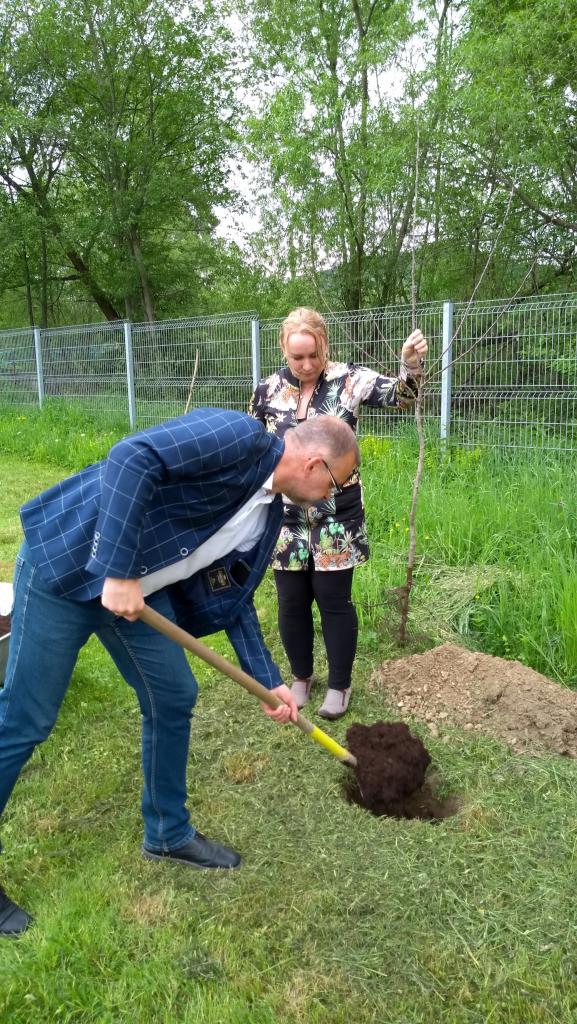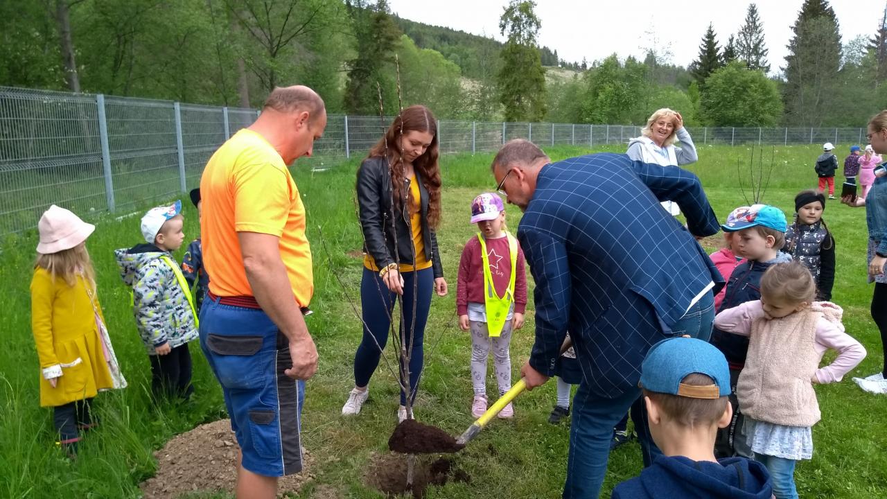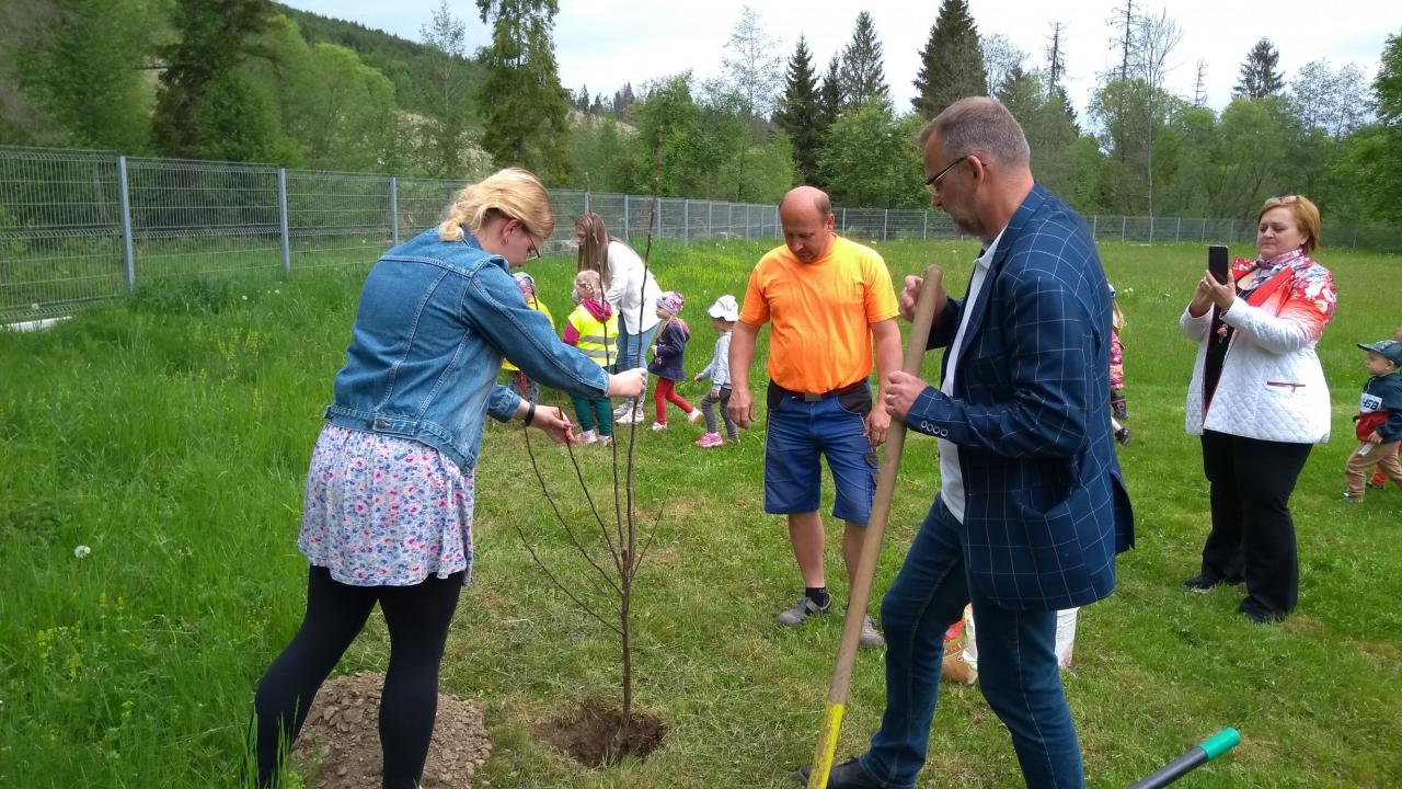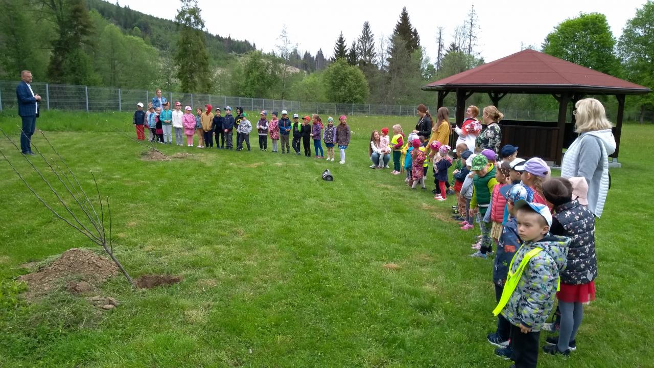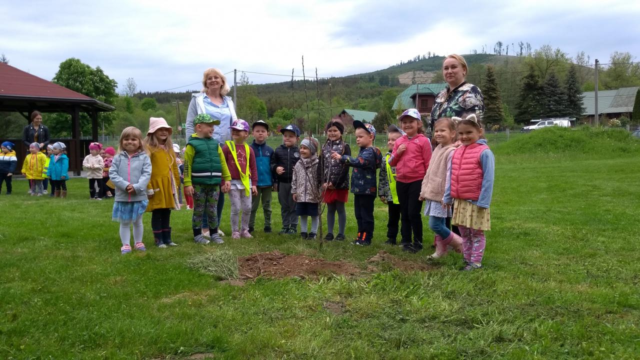 Vďaka sponzorskému daru 7 ks jabloní, starosta obce Ján Slaninák, deti z našej materskej školy a pani učiteľky tieto jablone vysadili do oddychovej zóny v centre obce.