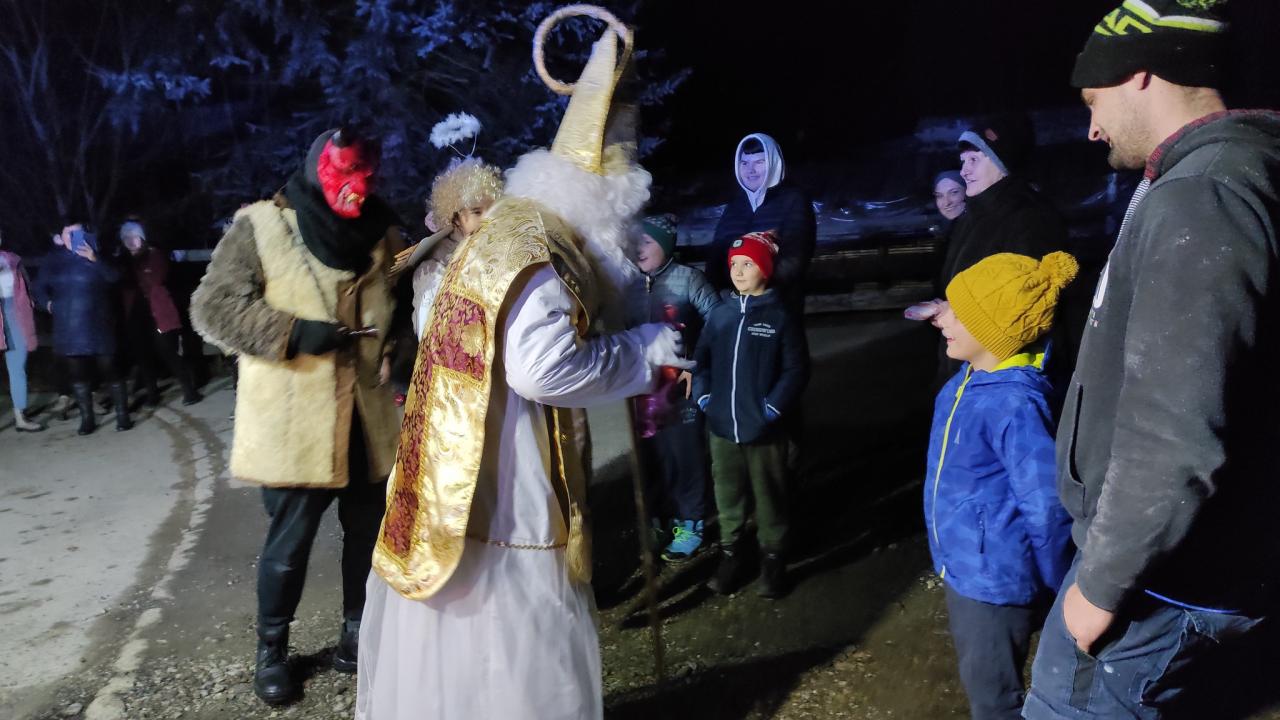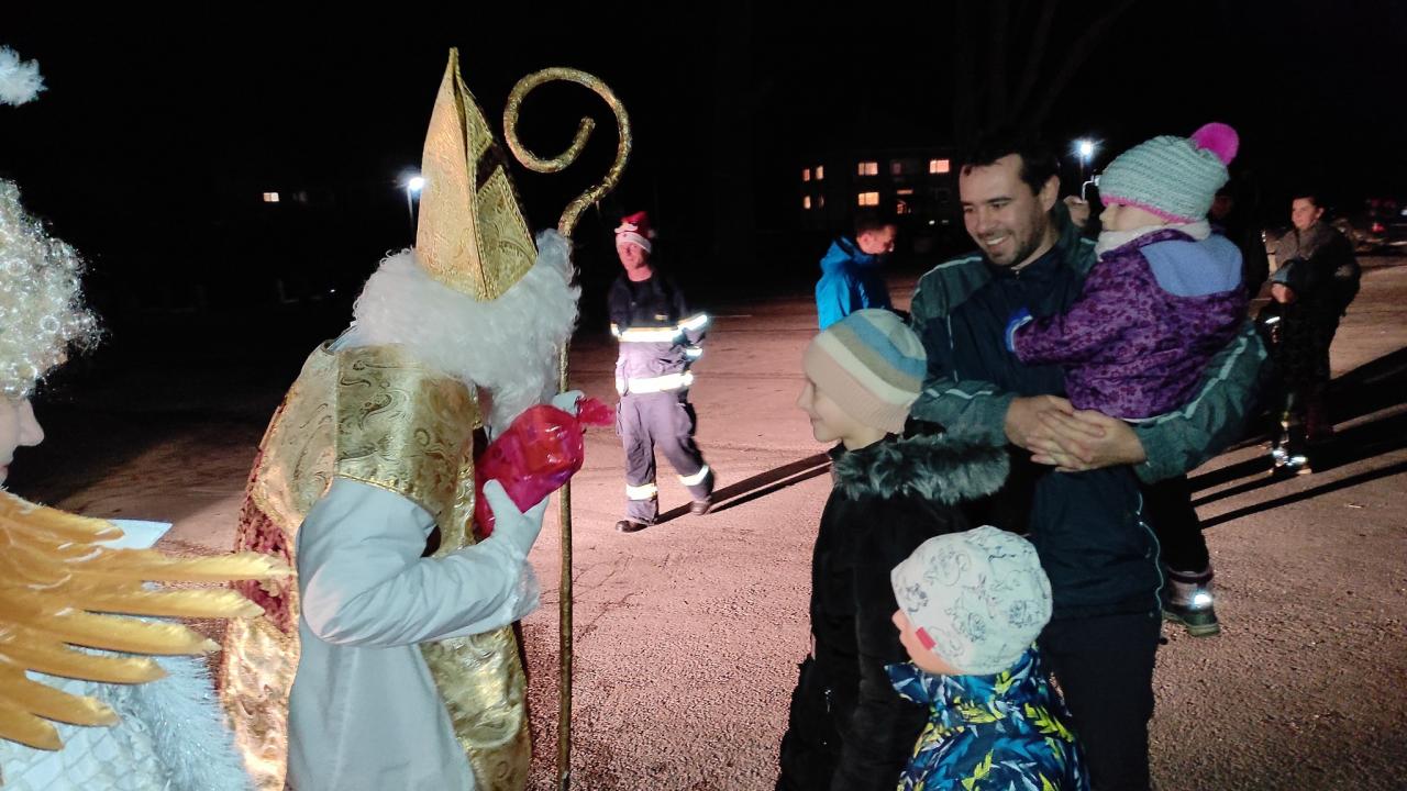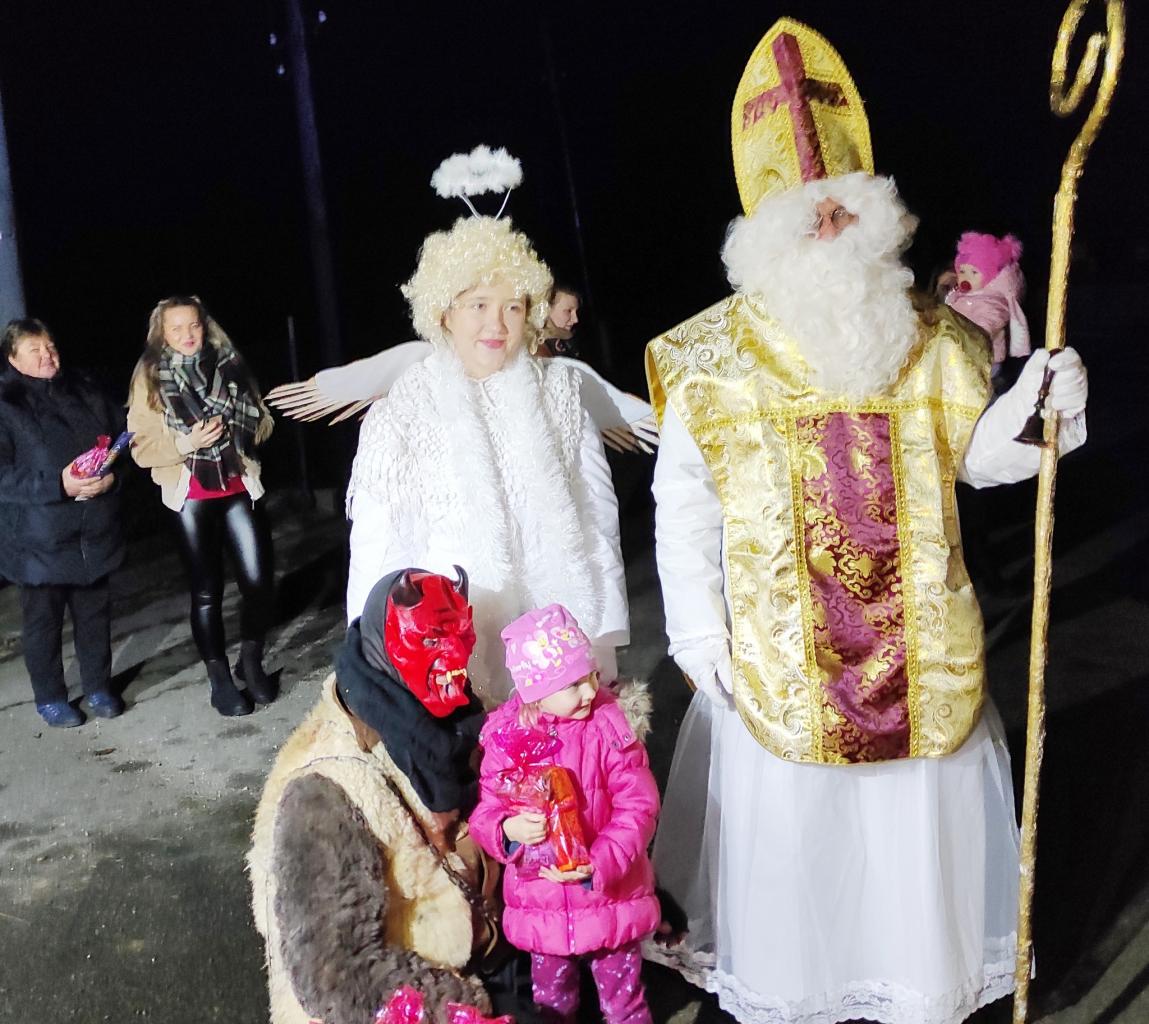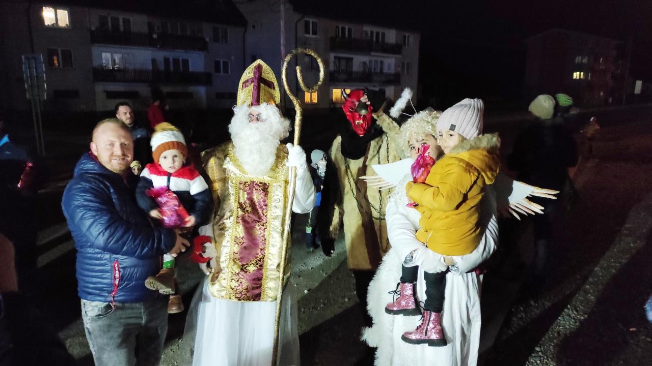 Spolu so svojimi pomocníkmi čertom a anjelom, sprevádzaný a strážený hasičmi, prechádzal celou obcou.