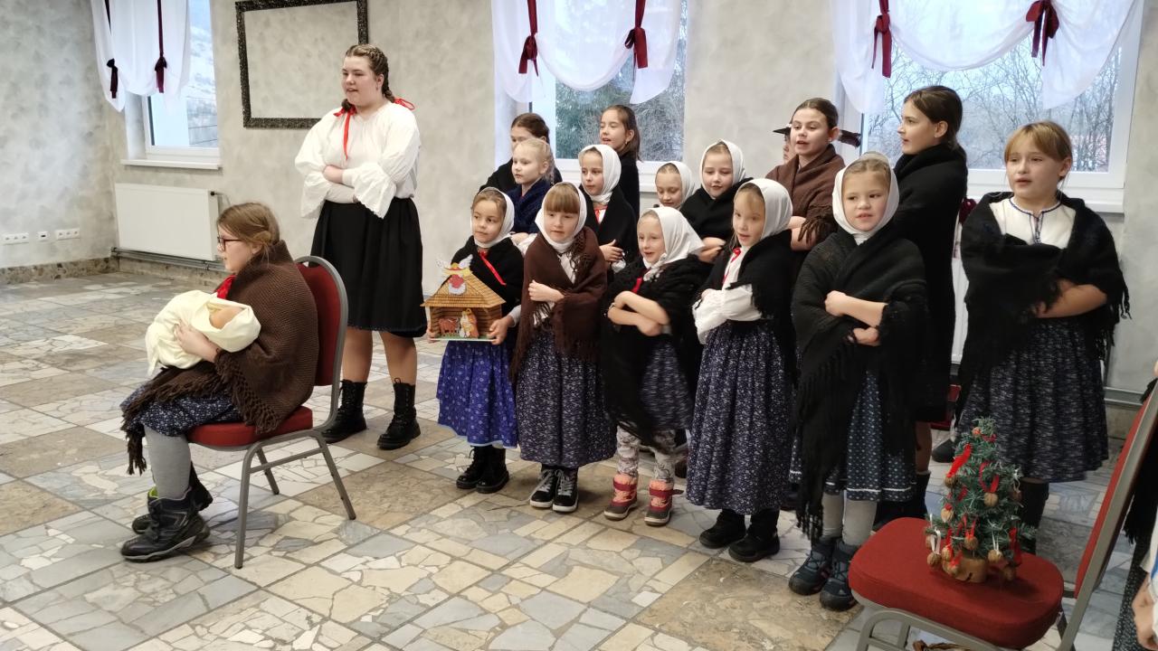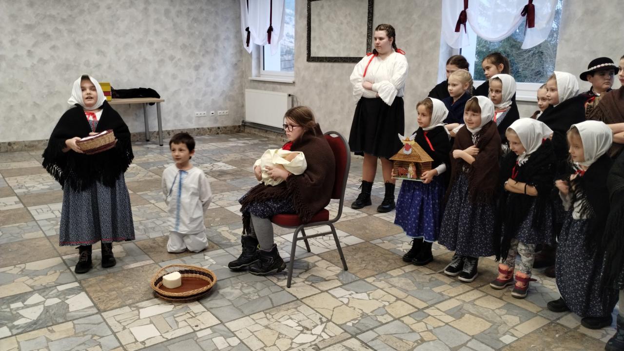Medzi našich seniorov zavítal aj starosta obce Zákopčie Ján Slaninák a všetkých prítomných svojím vystúpením potešil detský folklórny súbor Studnička zo Zákopčia.
