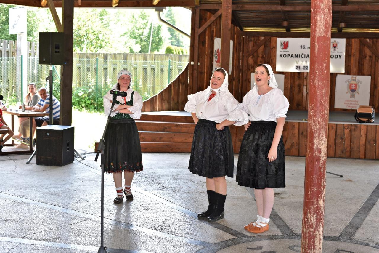 Od 13:00 hod. bol v areáli pod Hríbom v Ústredí pripravený bohatý kultúrny program, ktorý odštartoval kolektív učiteliek z našej základnej školy s pásmom ľudových piesní, potom nasledoval Detský folklórny súbor Studnička. Prvýkrát sa na hodoch predstavil FS Zakopčanka, zložení z členov Jednoty dôchodcov Zákopčie a nášho pána starostu, svoje umenie a nádherné prevedenie piesní rôznych žánrov predviedla skupina Elizabeth a tohtoročné Kopaničiarske hody ukončila hudbou a spevom dychová hudba Straňanka z južnej Moravy.