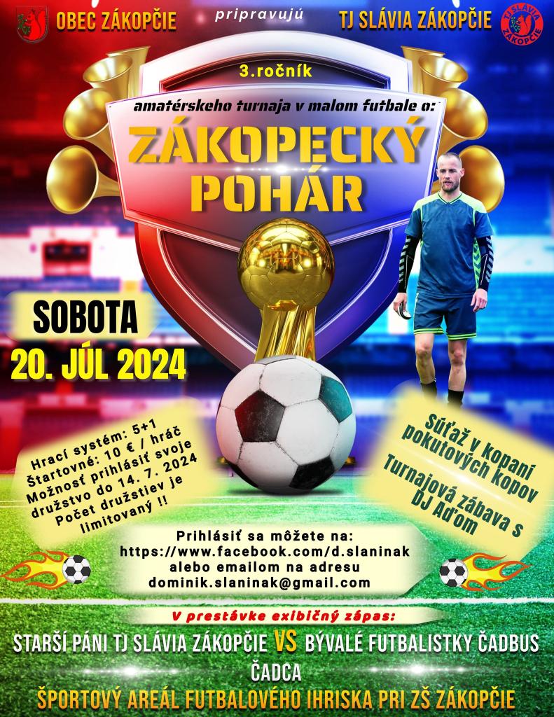Môžete sa tešiť na príjemnú športovú atmosféru, unikátne zápasy, bohaté občerstvenie a samozrejme, ceny pre tých najlepších. V prestávke turnaja sa okrem tradičnej súťaže v kopaní pokutových kopov uskutoční aj exibičný zápas starších pánov TJ Slávia Zákopčie proti bývalým futbalistkám Čadbus Čadca.