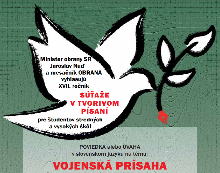 Súťažné práce v rozsahu od 1 000 do 5 000 znakov (s medzerami) treba vo formátoch DOC, DOCX, ODT alebo PDF posielať do 21. novembra 2021 na e-mailovú adresu sutaz@mil.sk.