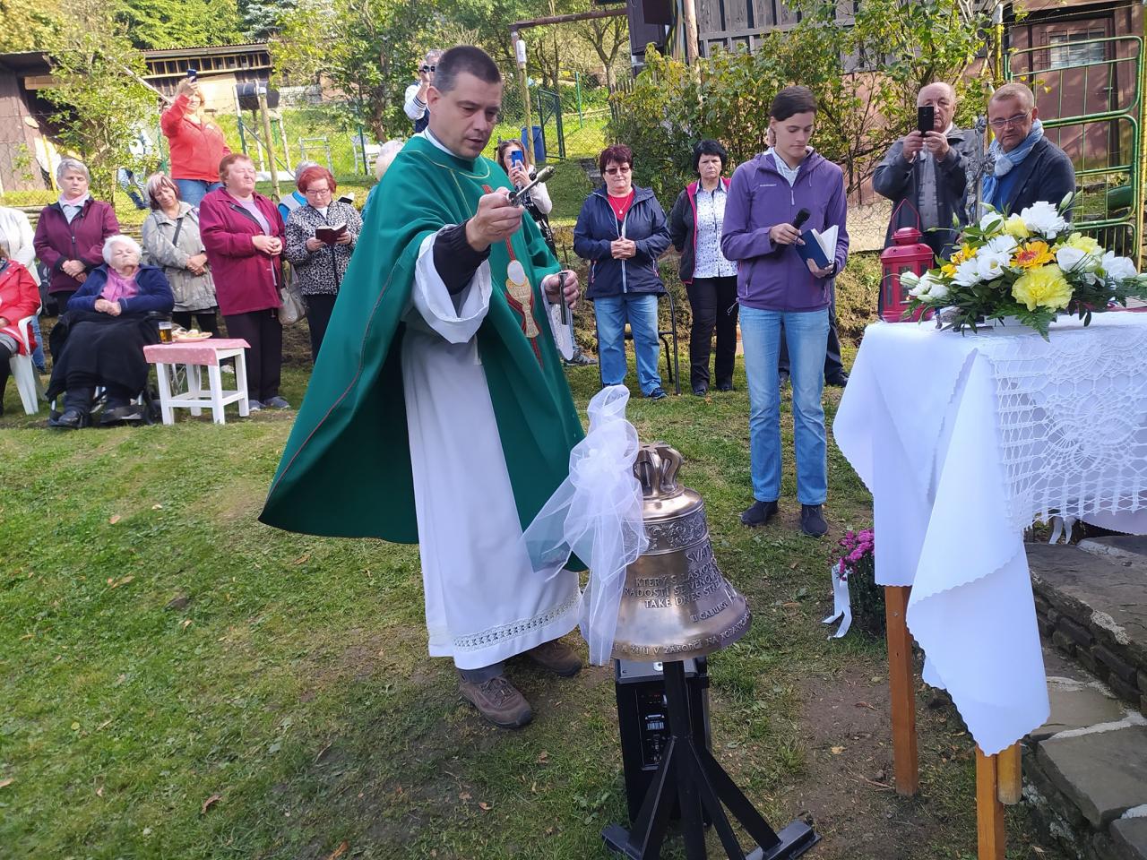 Kaplnu posvätil správca farnosti Zákopčie vdp. Mgr. Ing.Karol Vallo počas svätej omše za účasti všetkých, ktorí sa na vzniku kaplnky podieľali a početnej účasti nielen obyvateľov našej obce.