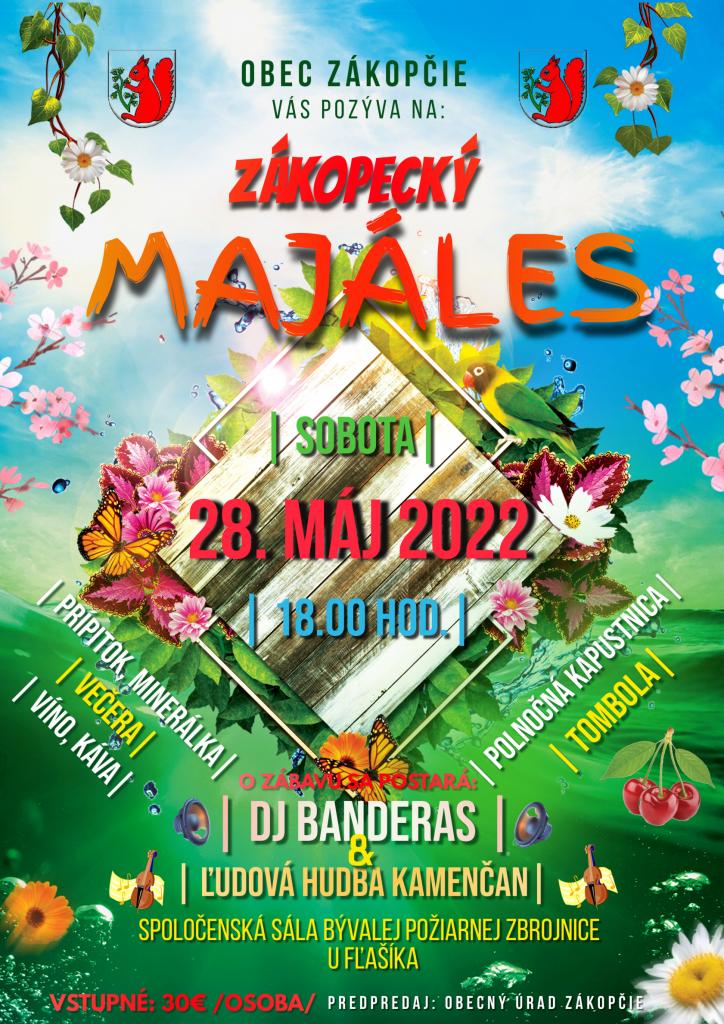Obec Zákopčie Vás pozýva 28. mája 2022 do spoločenskej sály bývalej požiarnej zbrojnice u Fľašíka na Zákopecký majáles.