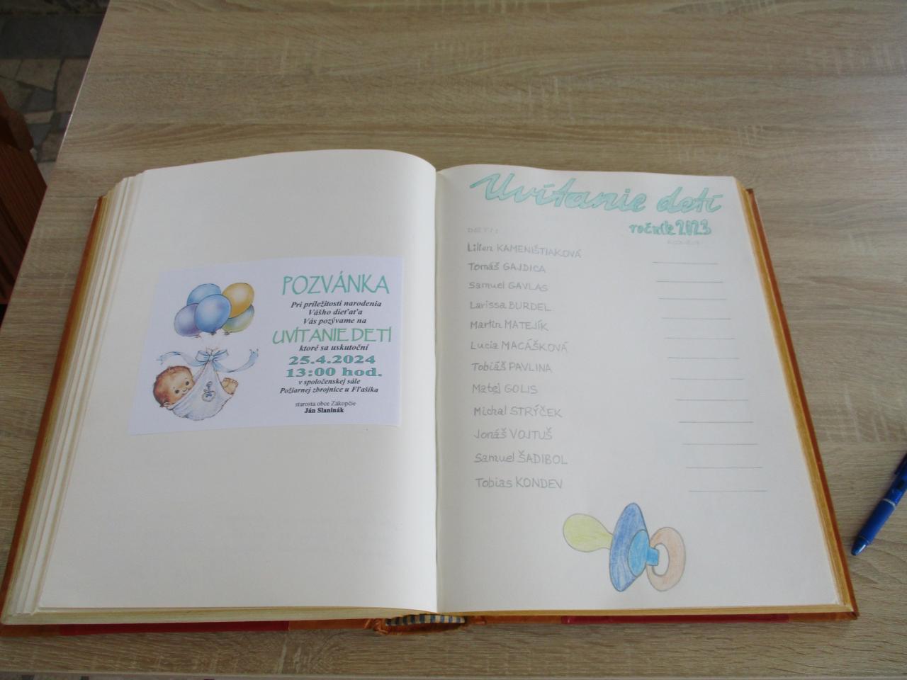 Pri tejto príležitosti sa rodičia zapísali do pamätnej knihy Obce Zákopčie a prevzali od pána starostu pamätný list, vecný darček a kvietok.